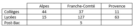 Participation de 29 classes de lycée, de 20 classes de collèges et 3 sections d’étudiants de BTS.